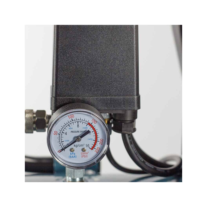 Με δύο μανόμετρα για ένδειξη πίεσης αέρα καζανιού και εξόδου.