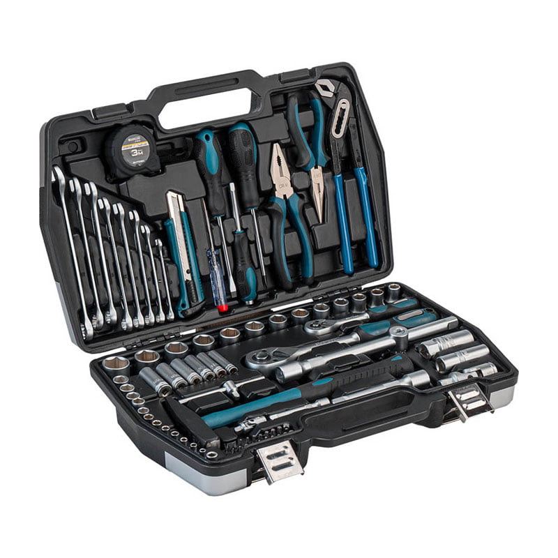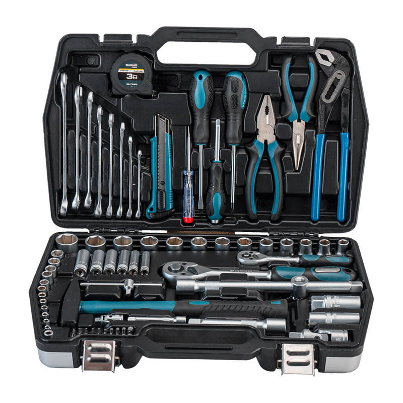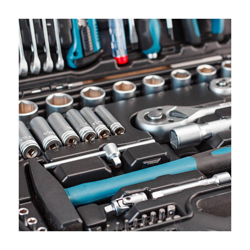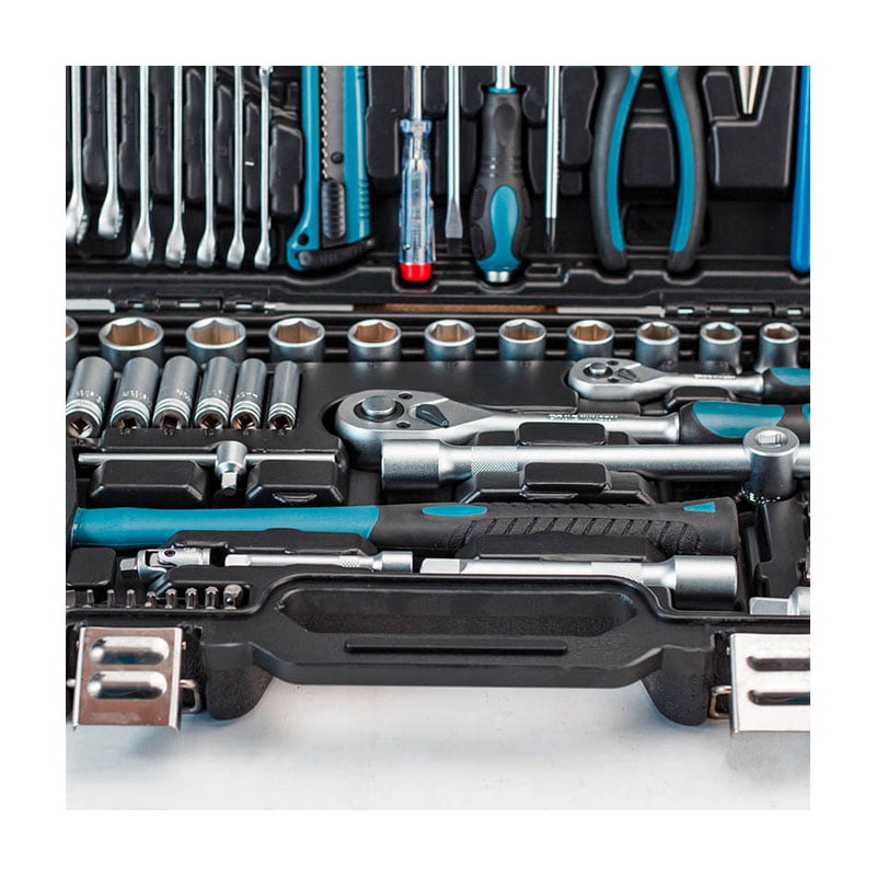Σετ εργαλείων 81 τεμαχίων CRV σε βαλίτσα με καρυδάκια 1/2” & 1/4”. Τα καρυδάκια είναι κατασκευασμένα από χάλυβα χρωμίου – βαναδίου και φυλάσσονται προσεκτικά σε ειδικά προσαρμοσμένες θέσεις μέσα στην κασετίνα, ώστε να αποθηκεύονται και να μεταφέρονται εύκολα και με ασφάλεια.
