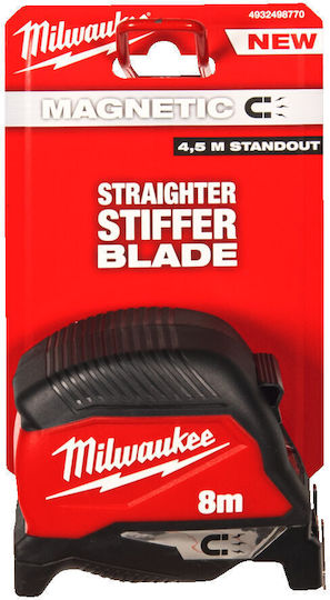 Η Milwaukee Μετροταινία διαθέτει ενσωματωμένο μαγνήτη, που προσφέρει σταθερή στήριξη κατά τη διάρκεια των μετρήσεων. Αυτός ο μαγνήτης εξασφαλίζει ότι η ταινία παραμένει στη θέση της, καθιστώντας την ιδανική για εργασίες όπου απαιτείται ακρίβεια και ευκολία στην τοποθέτηση. Με αυτή τη λειτουργία, μπορείς να εργάζεσαι με αυτοπεποίθηση, ξέροντας ότι η μετροταινία θα παραμείνει ασφαλής και δεν θα γλιστρήσει.